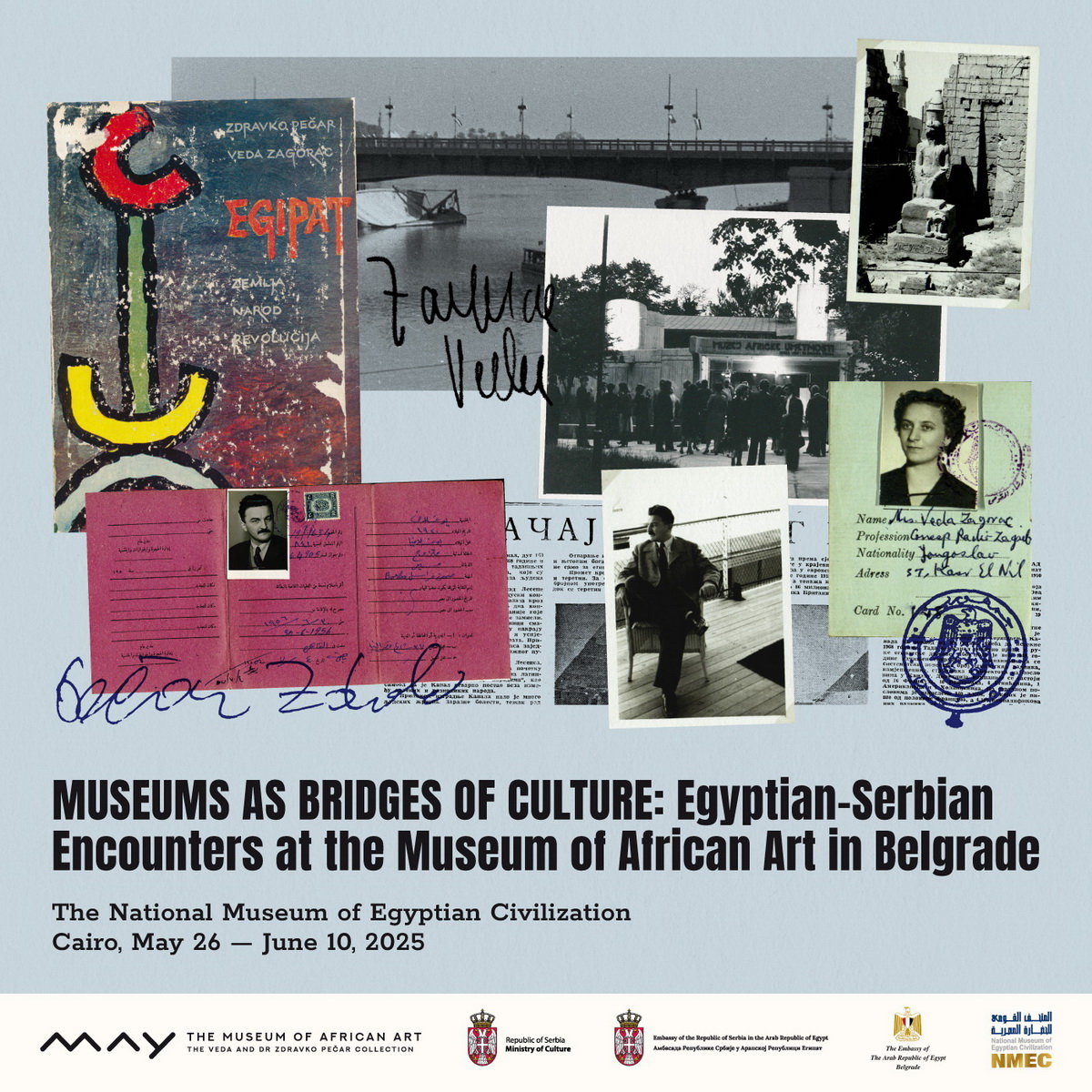 The exhibition “Museums as Bridges of Culture: Egyptian-Serbian Encounters at the Museum of African Art” was officially opened on May 26, 2025, at the National Museum of Egyptian Civilization (NMEC) in Cairo.